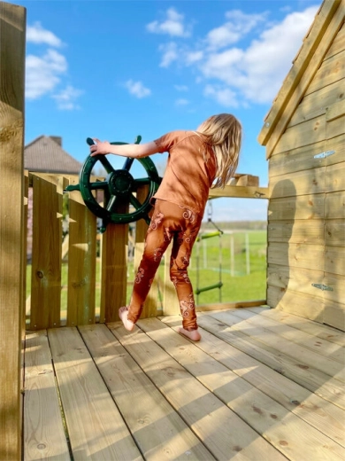 Verander elke hoek in het dek van een piratenschip! Het grote Jumbo-stuurwiel voor kinderen met een diameter van 53 cm trekt direct de aandacht en dankzij de geluidseffecten bij het draaien worden kinderen helemaal in het spel meegezogen. Perfect voor in de tuin, op de speelplaats, aan een klimtoestel of in de kinderkamer.