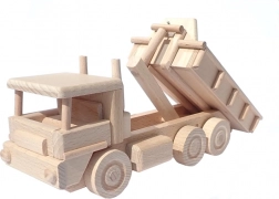 Kwalitatieve houten vrachtwagen met container van het merk Ceeda Cavity, gemaakt van beukenhout zonder chemische behandelingen, enkel gewaxt en gepolijst voor een natuurlijke uitstraling. Voorzien van afgeronde randen, bewegende wielen en geschikt voor in de zandbak – een veilige en duurzame speelgoedauto voor kinderen vanaf 3 jaar.