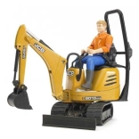 De JCB mini-graafmachine heeft een draaibare cabine en een arm met lepel, wat kinderen een geheel authentieke bouwervaring biedt.