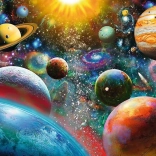 Ontdek het fascinerende universum met een puzzel van 1000 stukjes, die een indrukwekkend beeld van de kosmos tot leven brengt door kunstenaar Adrian Chesterman.