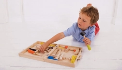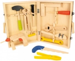 Geweldige houten gereedschapskoffer voor alle jonge doe-het-zelvers die hun ambachtelijke vaardigheden willen ontwikkelen. Bevat een hamer, tang, boor en moersleutels, allemaal van hoogwaardige materialen.