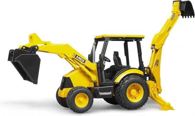 De Bruder tractor JCB MIDI is een realistisch model van een multifunctionele lader, die geweldige stabiliteit en uitstekende functies biedt. Deze speelgoedtractor heeft een voorlaadschep met twee standen - laad- en lospositie, die eenvoudig te verwisselen is. De achterste graafarm is afneembaar en de bestuurdersstoel is draaibaar, wat realisme en dynamiek aan het spel toevoegt.