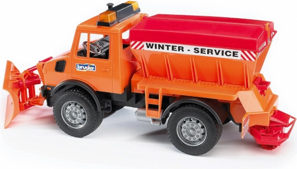 De strooier voor strooimateriaal is functioneel – tijdens het rijden draaien de schroeven, die het strooien van grind of zout simuleren. De laadbak heeft een opklapbare afdekking voor gemakkelijke toegang. Het model is gemaakt van hoogwaardig, duurzaam kunststof en blinkt uit door vele details die creatief en realistisch spel ondersteunen.