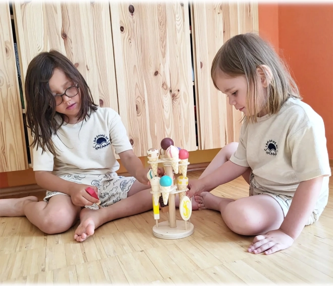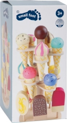 De houten ijskraam Small Foot stimuleert kinderen tot creatief spel en helpt tegelijkertijd hun cognitieve en communicatieve vaardigheden te ontwikkelen. Deze kleurrijke set heeft drie niveaus met tien ijsjes en vijf waterijsjes, die in ronde openingen kunnen worden geplaatst of in de voet van de standaard kunnen worden gezet.