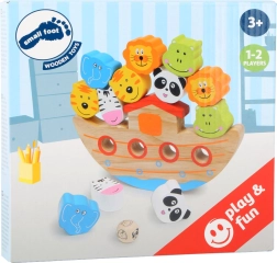 Ontdek de charme van het balansspel met een houten ark dat zowel kinderen als volwassenen boeit. Het doel is om kleurrijke dieren op de boot te stapelen zonder dat deze omkantelt. Dit spel ontwikkelt de fijne motoriek, oog-handcoördinatie en leert kinderen geduld en strategisch denken.