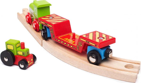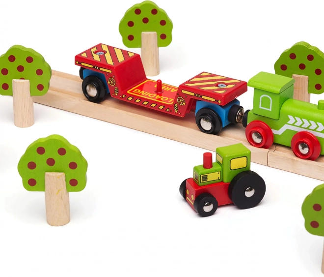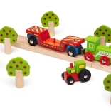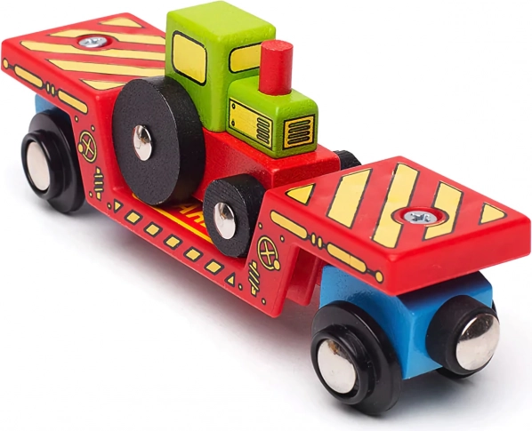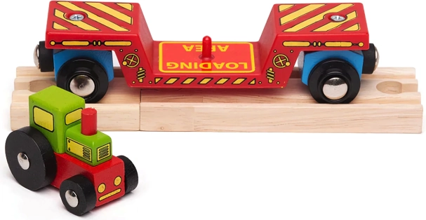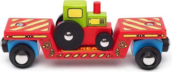 Deze kleurrijke set brengt nog meer verbeelding in de kinderwereld van de spoorweg. De tractor kan van de wagon worden gehaald en gebruikt worden in boerderijspel, of via het laadplatform worden opgeladen voor een reis over de rails. Dankzij de magnetische koppelingen koppelt de wagon snel aan de locomotief en andere wagons, zodat het uitbreiden van de bestaande trein slechts een kwestie van momenten is.