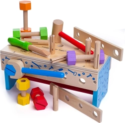 De Bigjigs Toys speelgoedset brengt een kwalitatieve houten werkbank met gereedschap, die op een leuke manier de creatieve vaardigheden en motorische ontwikkeling van kinderen stimuleert. Bevat een hamer, een sleutel en diverse schroeven die kinderen gemakkelijk kunnen gebruiken voor diverse bouwactiviteiten.