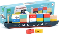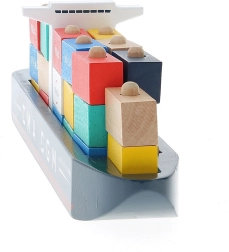 Dit stijlvolle houten containerschip biedt realistisch spel met containers op pennen die je naar wens kunt stapelen, sorteren en verplaatsen. Kinderen oefenen de oog-handcoördinatie en leren de basis van logistiek en sorteren van kleuren en vormen.