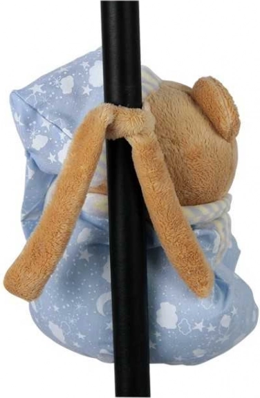 De beer heeft een blauw pyjama met sterren- en maanmotief dat een rustgevend gevoel geeft en is de ideale metgezel voor de kinderkamer.