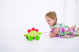 Het speelgoed is gemaakt van materialen uit verantwoorde bronnen en voldoet aan de huidige Europese veiligheidsnormen. Vrolijke kleuren, een prettig houten oppervlak en het schattige uiterlijk van de stegosaurus motiveren kinderen tot actieve beweging en het ontdekken van de wereld.