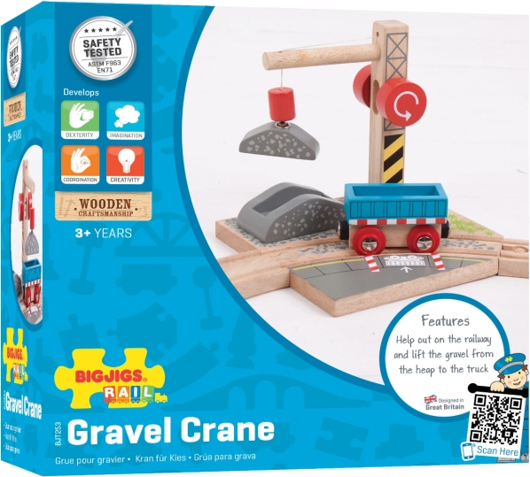 De Bigjigs Rail houten treinbaan met kraan en grind systeem is een geweldige aanvulling op elke kindercollectie treinbanen. Deze hoogwaardige kraan is uitgerust met een magnetische katrol waarmee eenvoudig ladingen kunnen worden opgetild en neergelaten, wat creatief en interactief spel stimuleert.