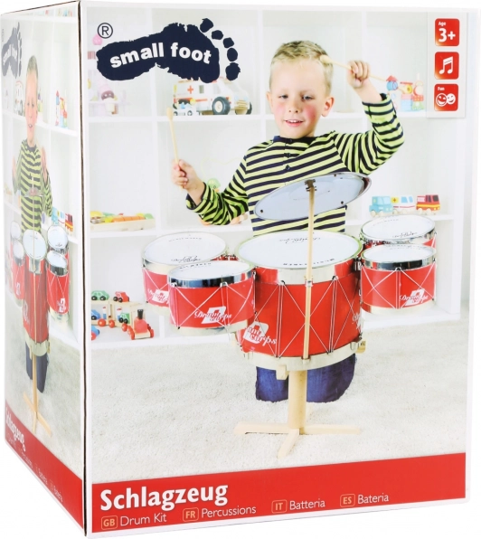 Dit SMALL FOOT kinderdrumstel biedt een realistische muzikale ervaring in een veilige en duurzame uitvoering. Dankzij de combinatie van hout en metalen elementen biedt het stabiliteit, een aangename klank en een lange levensduur – ideaal voor de eerste drumstappen en voor dagelijks spelen.