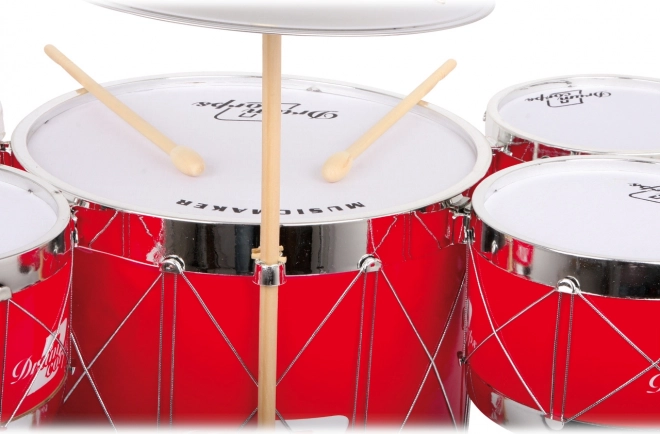 Vijf trommels, een bekken, een standaard en twee stokken – alles wat je kind nodig heeft voor de eerste ritmes en muzikale ontdekkingen.