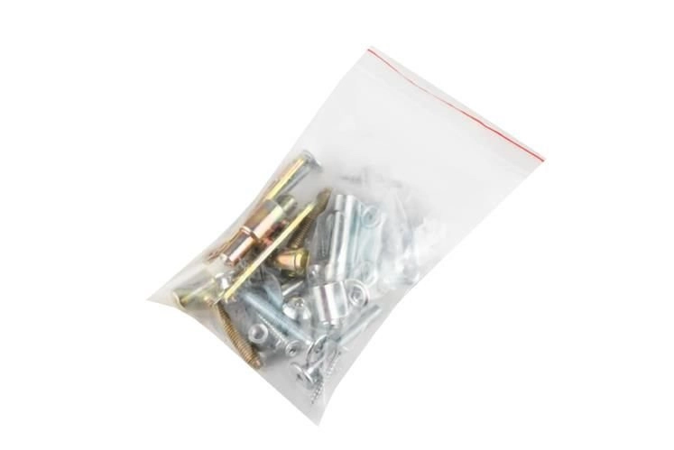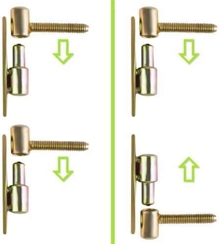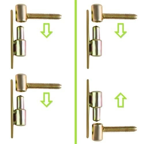 - 1× hekje, 2× pennenscharnieren, 12× kleine schroeven, 4× middelgrote schroeven (voor hout), 2× hoefijzers voor zijbeveiliging, 2× schroeven met halve bolkop, 2× brede ringen, 2× vleugelmoeren, 2× schuifgrendels met dubbele beveiliging