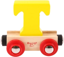 De houten Bigjigs Rail-wagons met de letter T, verkrijgbaar in diverse kleuren zoals rood, paars, oranje, groen, geel of blauw, zijn ideaal om eigen naamtreinen of andere woorden-treinen te maken. Dankzij de magnetische koppelingen zijn ze compatibel met andere houten treinsets op de markt. Deze wagons zijn een geweldig hulpmiddel voor de ontwikkeling van kinderen bij allerlei gelegenheden, zoals feestdagen of verjaardagen.