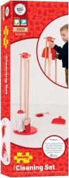 Compacte houten schoonmaakset van Bigjigs Toys biedt kinderen realistisch speelplezier en leren in één. Bevat een mop, bezem, stoffer en borstel, allemaal netjes opgeborgen op een houten standaard voor eenvoudig opbergen. Ideaal voor de ontwikkeling van de fijne motoriek en rollenspel, gemaakt van kwalitatieve en veilige materialen. Geschikt vanaf 3 jaar.