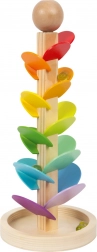 De houten Small Foot knikkerbaan verandert elke rit van een knikker in een klein concert. Terwijl de glazen knikker over de kleurrijke blaadjes glijdt, ontstaan van hoge naar lage tonen die het gehoor prikkelen en kinderen een rustgevende én leuke ervaring bieden. De robuuste houten constructie met een stabiele basis en glad oppervlak voelt prettig aan en is klaar voor dagelijks spelen.