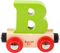 De wagon is gemaakt van hoogwaardig hout en metaal, heeft betrouwbare magnetische koppelingen en sluit soepel aan op andere wagons en locomotieven. Wordt geleverd in een willekeurige kleur (rood, paars, oranje, groen, geel of blauw). Let op: letterwagons zijn niet ontworpen om door de tunnels van treinbanen te rijden.