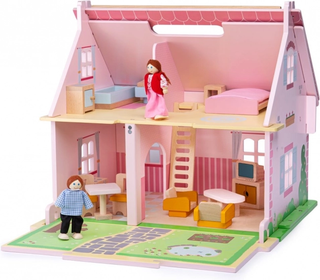 Dit hoogwaardige houten poppenhuis is ontworpen voor eindeloze uren fantasierijk spel. Dankzij de lift, het terras en de rijke meubeluitrusting creëren kinderen moeiteloos hun eigen verhalen en scènes. De ingebouwde handgreep maakt het eenvoudig om het huis te verplaatsen en het speelplezier overal mee naartoe te nemen.