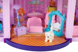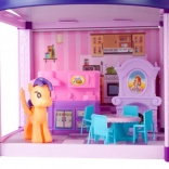 Uniek poppenhuis van kunststof, ideaal voor veel uren speelplezier voor ieder meisje en haar vrienden. Het huis is perfect voor de pony’s en de hond die in de set zitten, of voor poppen. Iedereen zal zich in deze residentie als in een paleis voelen. Het grote huis heeft ook grotere meubelstukken, waardoor het spel makkelijker en realistischer wordt. De interieurs weerspiegelen perfect een echt thuis.