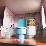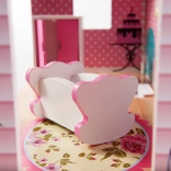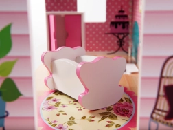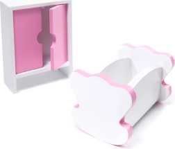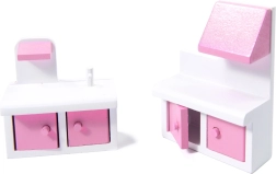 Inclusief 9 meubelstukken: kledingkast, wieg, lamp, 2 stoelen, tafel, keuken met afzuigkap, kastje met gootsteen en toilet – klaar voor direct speelplezier.