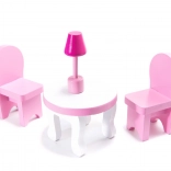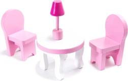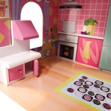 Zorgvuldig geschuurde onderdelen zorgen voor veilig spelen zonder splinters. Openende deurtjes van de keukenkastjes, de schommelende wieg, de tafel met stoelen en de kledingkast stimuleren de fantasie en ontwikkelen de fijne motoriek en sociale vaardigheden tijdens samen spelen en bouwen.