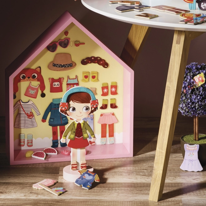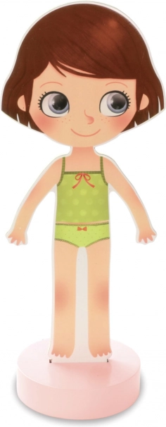 De magnetische aankleedpop Chloe is het ideale speelgoed voor kinderen die van mode en stijl houden. De stabiele houten standaard zorgt voor comfortabel aankleden en presenteren van outfits. Met de uitgebreide set magnetische items zijn ontelbare looks te combineren – van jurken en jasjes tot hoeden en schoenen.