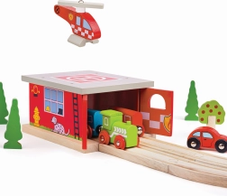 Stijlvolle houten loods voor de brandweer- en reddingstrein die elke houten treinbaan verrijkt met een actievol reddingselement. Inclusief helikopter en doorrijdstation, compatibel met de meeste houten treinbanen. Kwalitatieve materialen en een veilig ontwerp ondersteunen de verbeelding, fijne motoriek en coördinatie van kinderen vanaf 3 jaar.