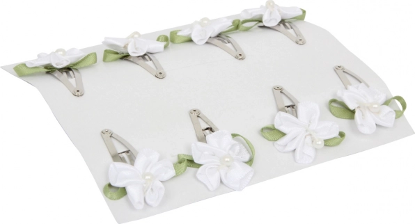 Deze set bevat 32 decoratieve haarspeldjes, ideaal voor alledaags gebruik of als opvallend accessoire voor speciale gelegenheden. Elk speldje is gemaakt van hoogwaardig metaal en versierd met stoffen bloemen en strikjes, die zorgen voor een esthetische look en duurzaamheid.