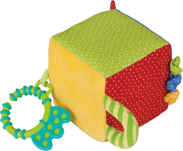 Deze zachte en veilige sensorische kubus is ideaal voor de eerste ontdekkingen van de wereld. Elke zijde biedt andere kleuren en oppervlakken die tast, zicht en gehoor stimuleren, en tegelijkertijd de oog-handcoördinatie ondersteunen. Dankzij de compacte afmetingen van 10 × 10 × 10 cm past hij perfect in de kinderwagen, het ledikant en is hij handig voor op reis.