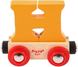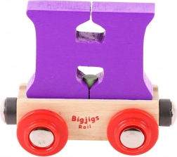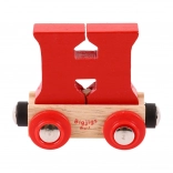 Deze kleurrijke wagon met een afneembare letter H breidt elke houten treinbaan uit en maakt het mogelijk namen, opschriften of wensen te maken voor verjaardagen, naamdagen en Kerst. De letter is afneembaar en uitwisselbaar met andere letters, zodat je samenstellingen eenvoudig kunt aanpassen.