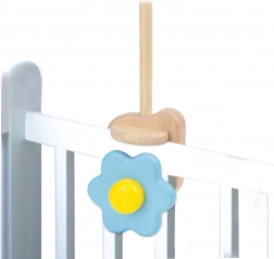 De elegante houten houder voor het ophangen van een babymobiel is ontworpen voor snelle montage en stevige bevestiging aan de spijlen van het ledikant. Massief hout zorgt voor stabiliteit en een lange levensduur, terwijl het decoratieve element met een bloemetje het ledikant een speels accent geeft.