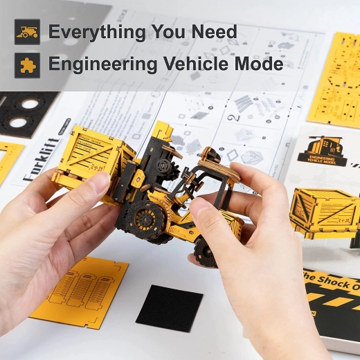 Deze bouwset voor intern transport neemt je mee in de wereld van krachtige machines en slimme mechanismen. De houten 3D-puzzel van de heftruck bestaat uit 139 laser-gesneden onderdelen waarmee je een gedetailleerd model met beweegbare delen bouwt. De bouw is intuïtief en dankzij de meegeleverde handleiding ook door beginners te voltooien.