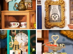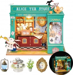 Maak je eigen magische miniatuur geïnspireerd door het verhaal ALICE IN WONDERLAND. Dit gedetailleerde DIY-huisje Alice’ theewinkel van ROBOTIME Rolife biedt LED-verlichting, tal van preciese accessoires en eenvoudige montage met een hoger aandeel voorgemaakte onderdelen. Een geweldige keuze voor creatieve ontspanning, cadeaus en stijlvolle interieurdecoratie.