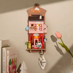 Ontdek de charme van miniaturen met onze uniek ontworpen bouwset "Postkantoor", die decoratieve details combineert met de functie van een ophangrek voor kleinigheden.