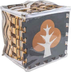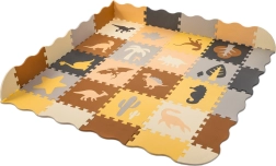 De mat kan worden gebruikt als een groot speeloppervlak van 143 × 143 cm of worden opgebouwd tot een speelbox van 113 × 113 × 16 cm. Het zachte EVA-schuim dempt schokken, isoleert tegen kou en is antislip. Het materiaal is gemakkelijk schoon te maken – gewoon afnemen met een vochtige doek. Het elegante, neutrale palet past bij een modern interieur en kan een tapijt in de kinderkamer vervangen.