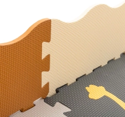 EVA-schuim met een dikte van 1 cm dempt vallen en isoleert tegen een koude vloer. Het antislip oppervlak verhoogt de stabiliteit tijdens spelen en kruipen.
