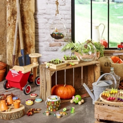Duurzame houten en vilten onderdelen, een stevige speelplaat en een aantrekkelijk design weerstaan dagelijks spelen en nodigen uit tot herontdekken.