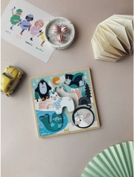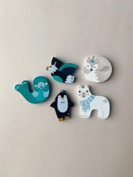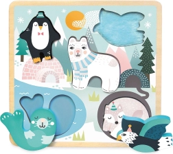 Deze houten, sensorische puzzel met pooldieren (pinguïn, ijsbeer, zeehond, walvis en vogeltje) brengt kinderen plezier in het ontdekken. Na het uitnemen van de massieve stukjes voelen kinderen de onderlagen met verschillende texturen, die het waarnemen van oppervlakken stimuleren en hen leren vormen en materialen te onderscheiden. De stevige houten uitvoering is duurzaam en makkelijk vast te pakken, ook voor de allerkleinsten.