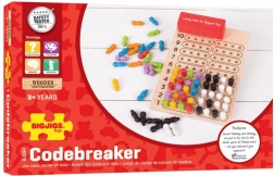 Het spel Logik van Bigjigs Toys is een geweldig reisspeelgoed en leermiddel. Spelers moeten de combinatie van vier gekleurde pinnetjes van hun tegenstander raden en hebben hiervoor slechts tien pogingen, wat spanning en concentratie garandeert. De kleuren van de pinnetjes zijn zeer levendig, wat helpt bij het leren kleurherkenning en het verbeteren van de coördinatie van bewegingen.
