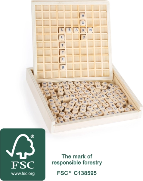 Houten spel met letters Small Foot is ideaal voor kinderen die hun woordenschat en spelling willen oefenen. Gemaakt van 100% FSC® gecertificeerd hout, biedt het een leuk en educatief spel op basis van het bekende Scrabble spelprincipe.
