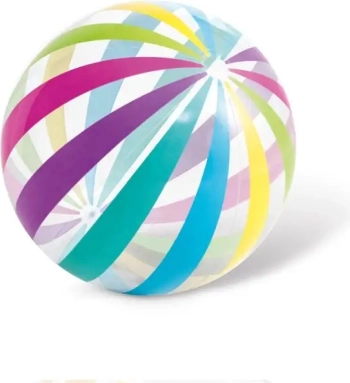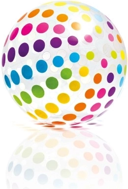 De transparante bal met bonte strepen en stippen trekt de aandacht op het strand en bij het zwembad en brengt elke zomeractiviteit op gang.
