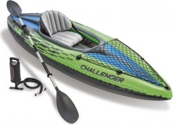 De opblaasbare kajak INTEX CHALLENGER K1 is een uitstekende keuze voor recreatief peddelen op rustig water en voor het afvaren van milde stroomversnellingen. Dankzij twee luchtkamers en een robuuste constructie van hoogwaardig PVC biedt hij zekerheid op het water en een lange levensduur. De aerodynamische vorm vergemakkelijkt het koershouden en verhoogt de efficiëntie van de slagen.