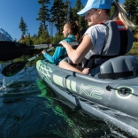 De opblaasbare kajak Challenger K2 is een ideale keuze voor koppels en vrienden die op zoek zijn naar een combinatie van comfort, stabiliteit en veiligheid. Dankzij de levendige kleuren bent u beter zichtbaar op het water, terwijl de verstelbare stoelen met rugleuning comfort bieden, ook tijdens langere tochten. Het praktische bagagenet op de boeg bergt kleine spullen op en het hulplint rondom maakt hanteren en dragen makkelijker.