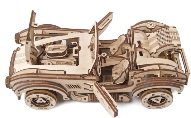 Geniet van een authentieke bouw- en rijervaring. De houten mechanische bouwset UGEARS Drift Cobra bevat 370 laser-precies uitgesneden onderdelen die zonder lijm in elkaar passen. Na montage krijg je een stuurbaar model met een werkende veermotor, stuurrem en een versnellingsbak voor stationair en achteruit.