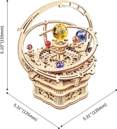 - 3D mechanische houten puzzel met muziekdoos (orrery)