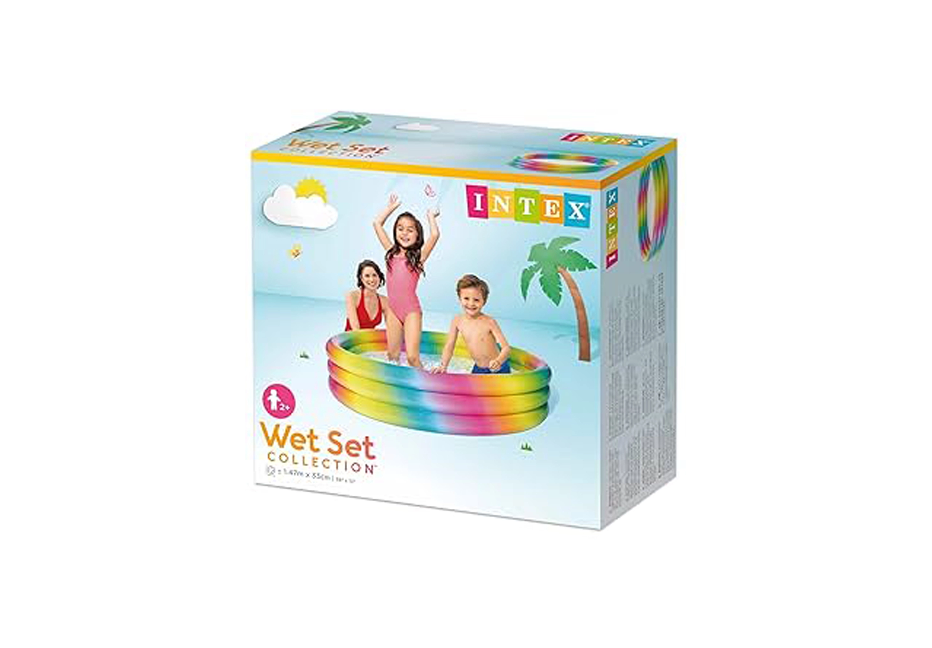 Dit kleurrijke zwembad valt op door zijn aantrekkelijke regenboogkleuren, die kinderen betoveren en elke tuin een vrolijke sfeer geven.