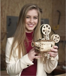 Bouw je eigen mechanische filmprojector van natuurlijk hout, die echt een zwart-witfilm projecteert. Het model ROKR biedt een handmatige zwengel-aandrijving, laserprecies uitgesneden onderdelen en montage zonder lijm. Een geweldige educatieve decoratie die technisch inzicht ontwikkelt en liefhebbers van retrodesign en cinematografie zal bekoren.