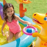 De vrolijke waterspeeltuin Intex Dinoland tovert de tuin om tot een plek vol zomerplezier. Kinderen glijden via de opblaasbare glijbaan het pierenbad in, koelen af onder de waterfontein en spelen met de opblaasbare dinosaurus met basket om in te gooien. De zachte landingsmat verhoogt het comfort en de veiligheid tijdens het ravotten.