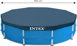 Praktisch INTEX afdekzeil voor framezwembaden met een diameter van 305 cm. Het beschermt het water betrouwbaar tegen vuil en helpt de temperatuur te behouden. Gemaakt van duurzaam vinyl (110 g/m²), biedt het een nauwkeurige pasvorm, eenvoudige installatie met aansnoerkoord en blijft dankzij de 25 cm overlap stevig op zijn plaats.